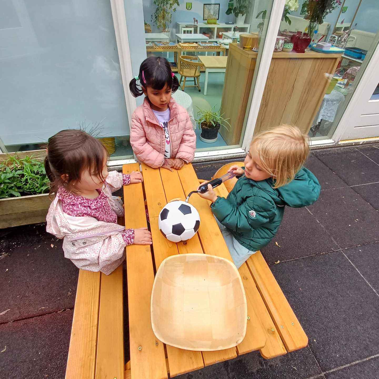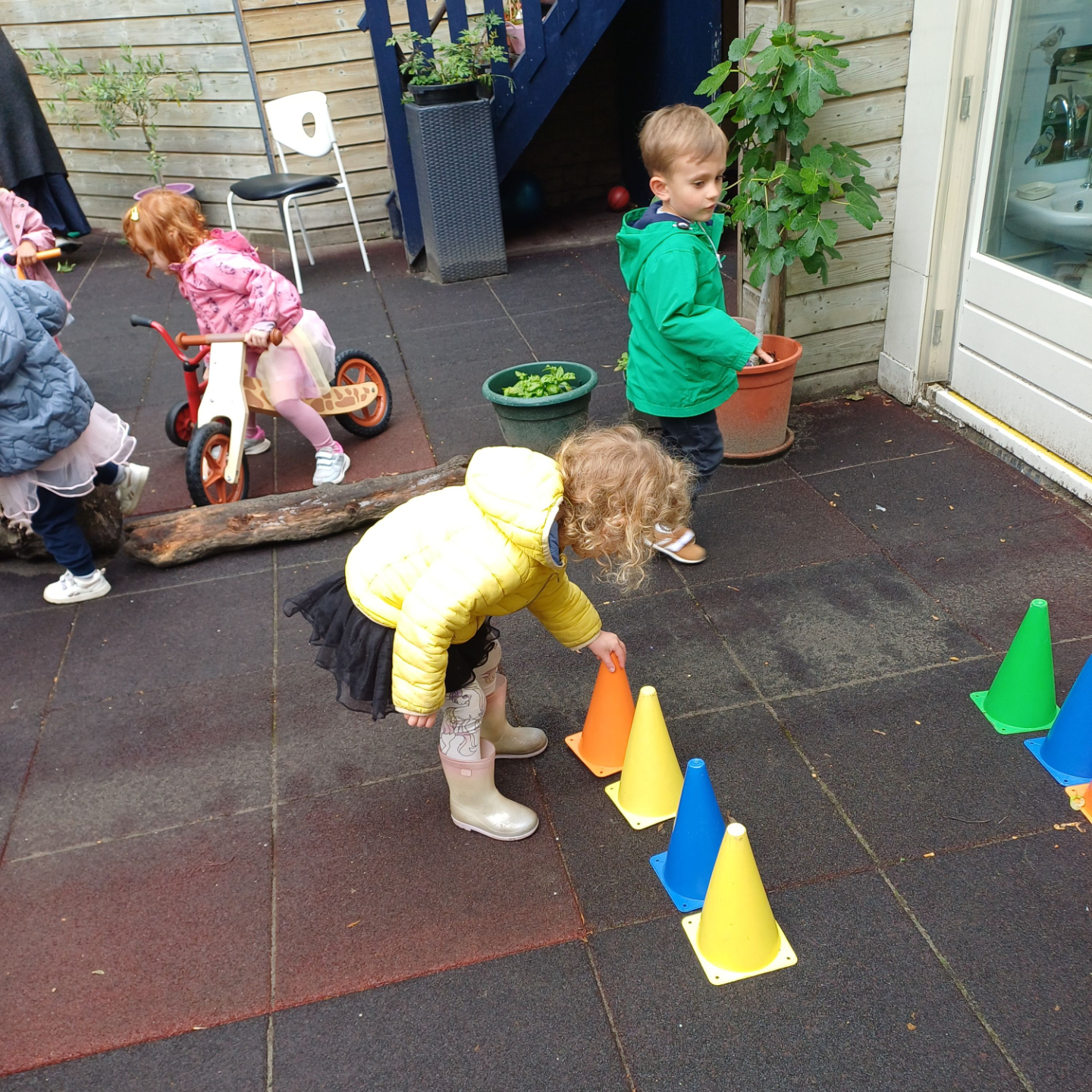 The groups of children spend time outdoors each morning and afternoon, in the playground or the public park close by. There are a vast amount of activities available to develop equilibrium and both fine & gross motor movement, as well as organized games and nature projects with the teachers.